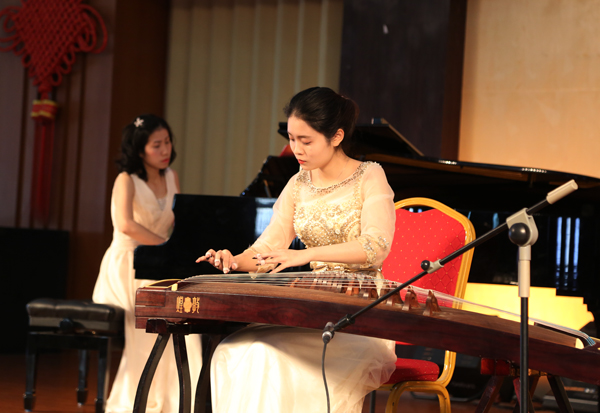 茶话会上,我校音乐学院的师生们及共建单位解放军某部文艺队还表演了舞蹈《鼓庆新春》、古筝独奏《枫桥夜泊》、二胡独奏《阳光照耀着塔什库尔干》、女声独唱《江山》等精彩节目。