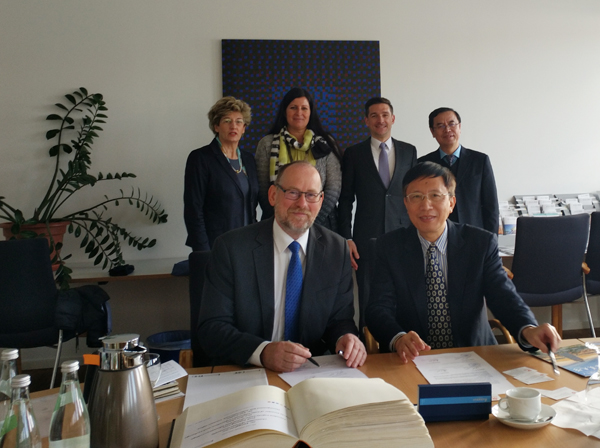 访问德国期间,辜芳昭一行前往代根多夫应用技术大学和德国BSK国际教育机构柏林总部,分别签署了中德教育交流与合作框架协议书,就共同搭建中德产教融合国际化资源平台、汇聚中德教育和企业优质资源、提升高校应用型师资队伍建设和中德国际工程师人才前期培养基地等项目达成共识。