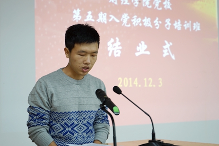 12月3日下午,财经学院举行党校第五期入党积极分子培训班结业式。院党委书记周邵生、副院长黄书猛、相关老师及培训班学员参加了结业式,结业式由院党委副书记张振富主持。