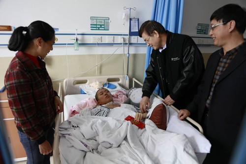 来到陈萃萃病床前,叶光煌亲切询问陈萃萃的身体恢复情况,鼓励她积极配合治疗,嘱咐她安心养病,并为她送上学院慰问金,期待她早日康复,重返校园。此外,陈萃萃的老师、同学、舍友也通过各种渠道表达了关心。